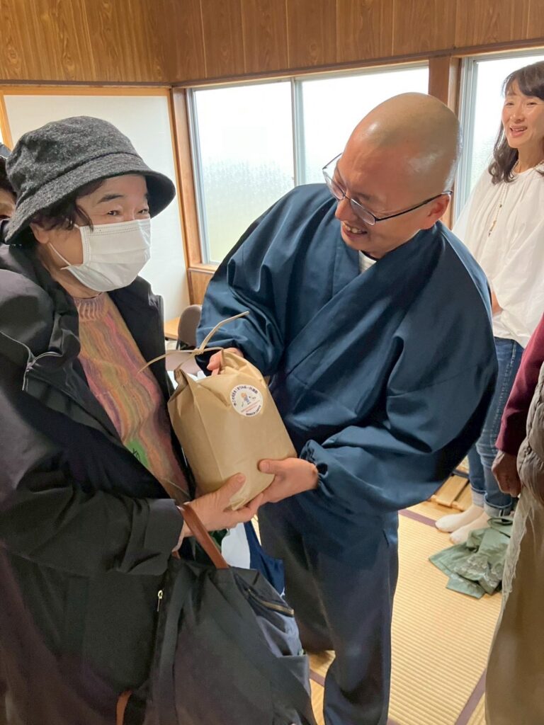 滋賀教区浄土宗青年会(若山大樹会長)の会員10名が、11月9日から10日にかけ、昨年に引き続き能登半島地震の被災地を訪れ「おうみ米一升運動」で集まったお米の寄託や傾聴活動などのボランティア活動を行った。 おうみ米一升運動とは、同教区内の寺院からお米(仏供米)を募り、フードバンクやボランティア団体に寄託する活動で、平成22年度から始められたもの。今年度は3ト