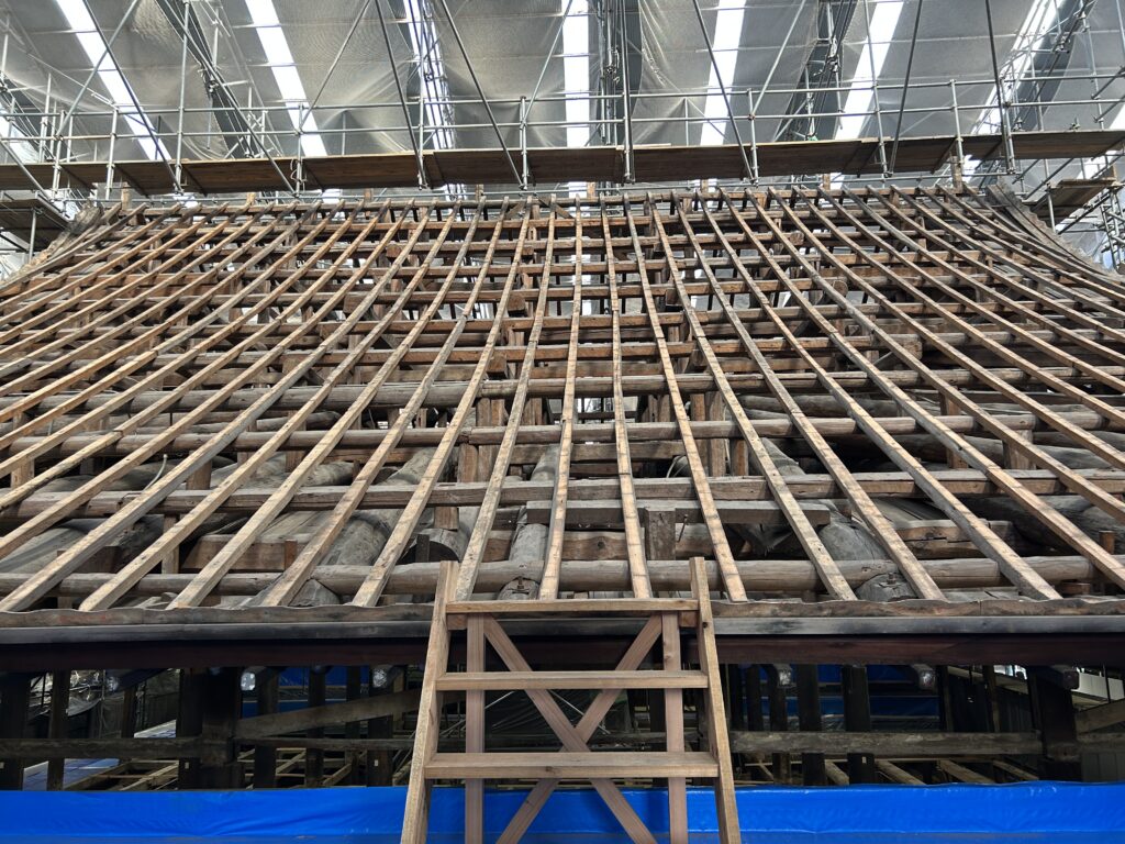 見学会では、素屋根の内側に入り修理工事の様子を見ることができるほか、職員の解説を通じて勢至堂の歴史や修理の方法や技術を学ぶことができる。8月を除く毎月行われ、定員30名、無料、人数に空きがあれば当日申し込みも。