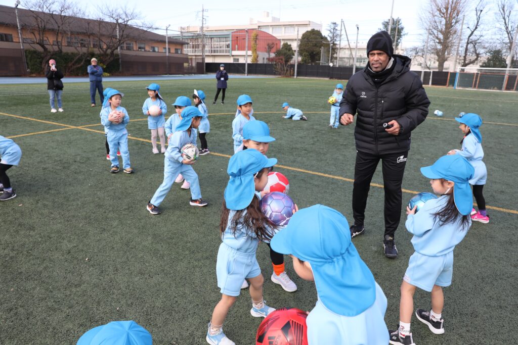 生徒との交流会では、三都主氏の実演を交えた指導が行われ、生徒たちは、世界で活躍した三都主氏のプレーを実際に体感。園児らは、PKゲームなどのサッカー交流だけではなく、三都主氏とブラジル料理を食べるなど海外食文化も体験、楽しく貴重な一時を過ごした。
